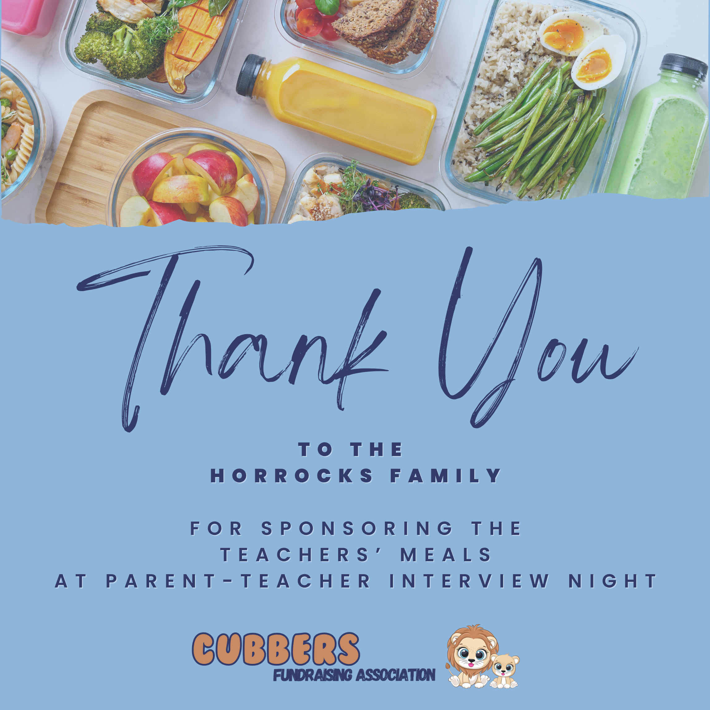The Horrocks family donated meals for staff at the Parent Teacher Interview night. -