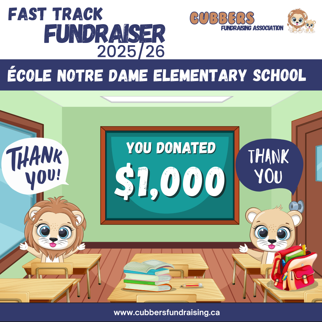 We are raising towards gymnasium and entryway enhancements at École Notre Dame Elementary School.Any additional funds above the $3,000 goal may go towards operational costs including Cubbers Fundraising Association insurance, TeamSnap subscription, & website renewal.