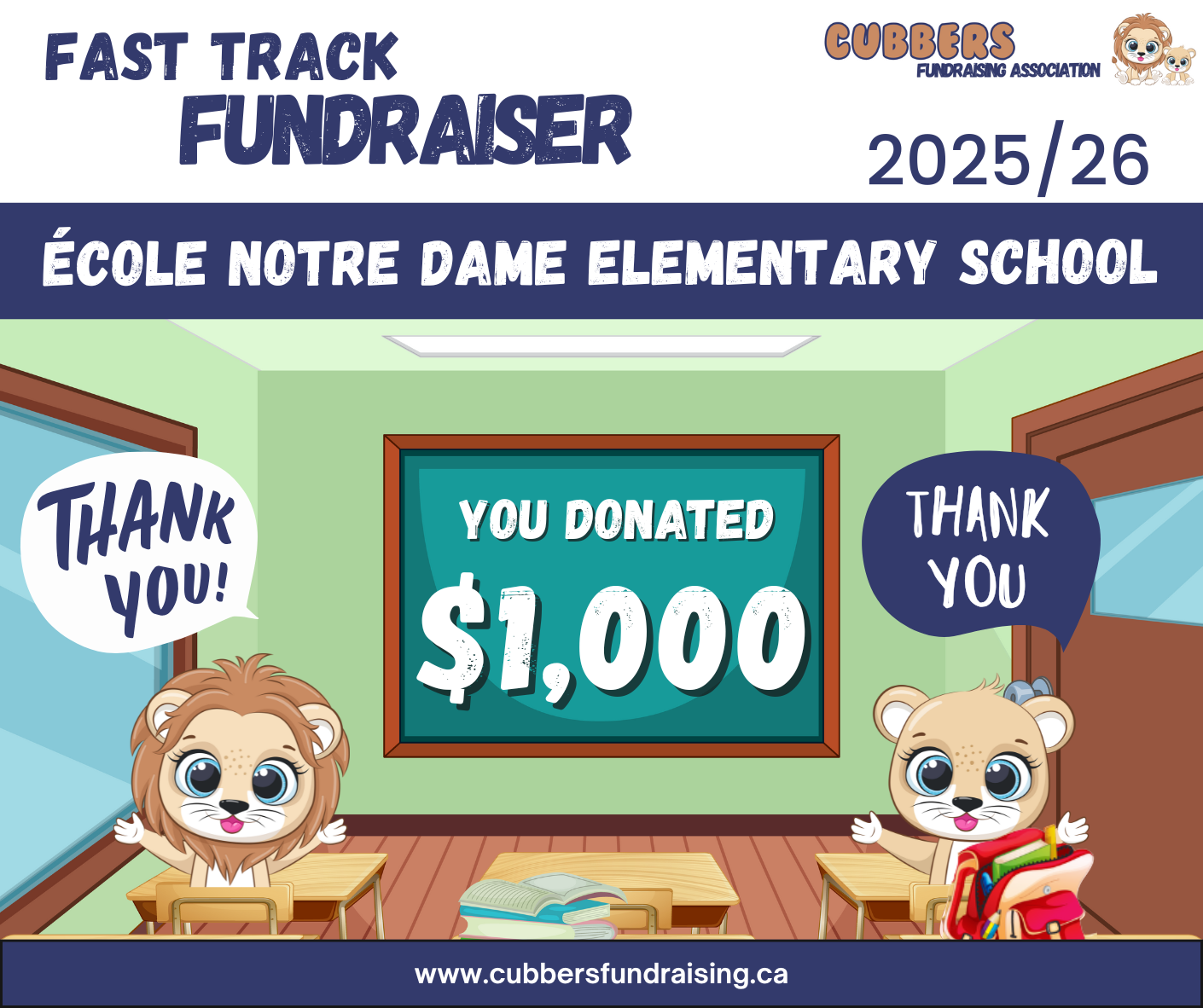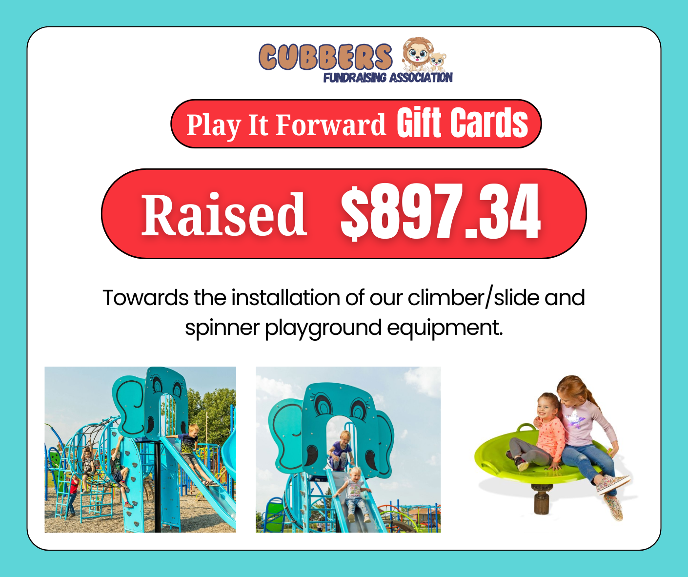 We are raising money towards playground equipment installation costs at École Notre Dame Elementary School.Any additional funds above the $5,000 goal may go towards operational costs including Cubbers Fundraising Association insurance, TeamSnap subscription, & website renewal.